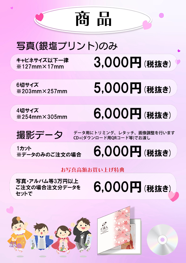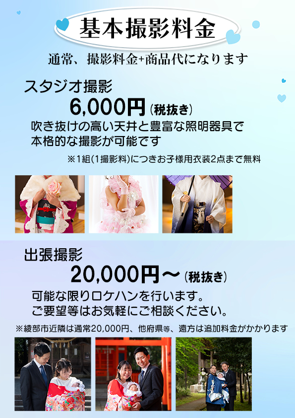 当スタジオの料金は「撮影料金 + 商品代」となっております。